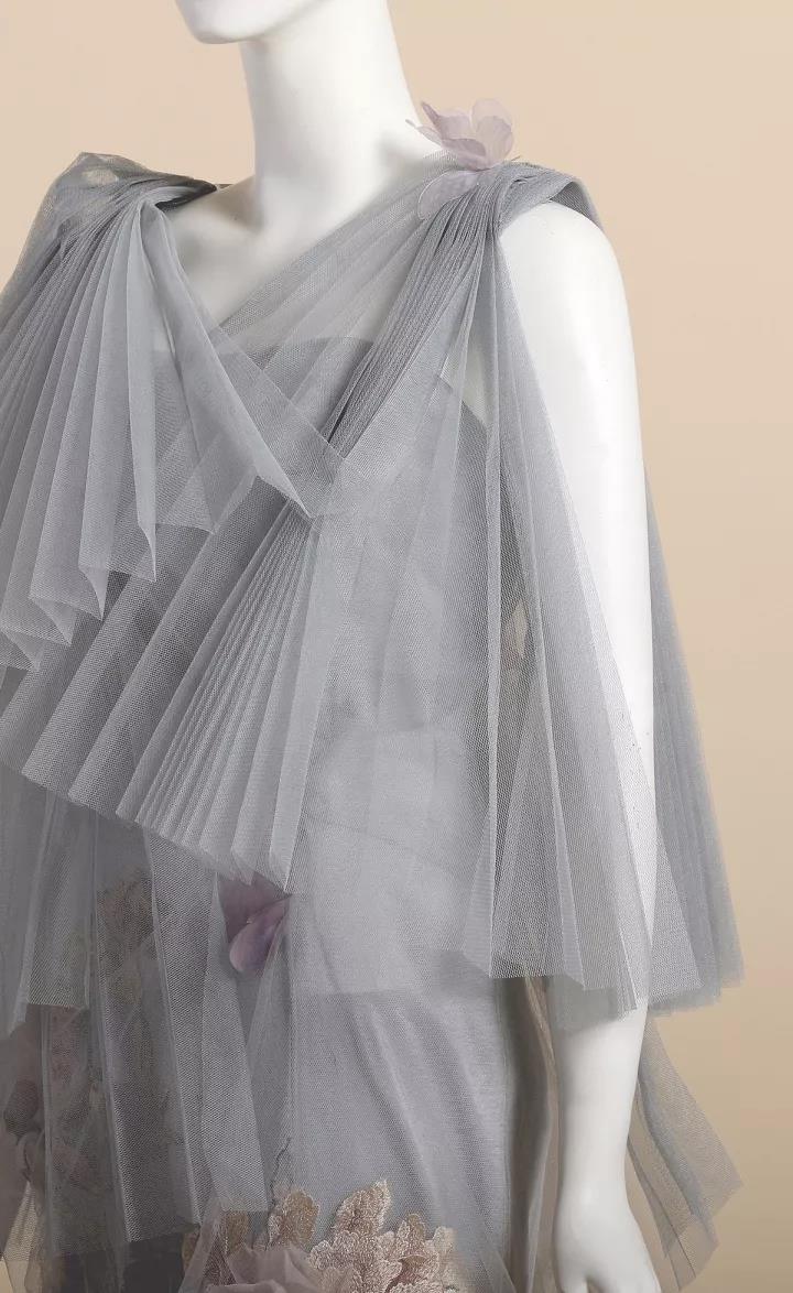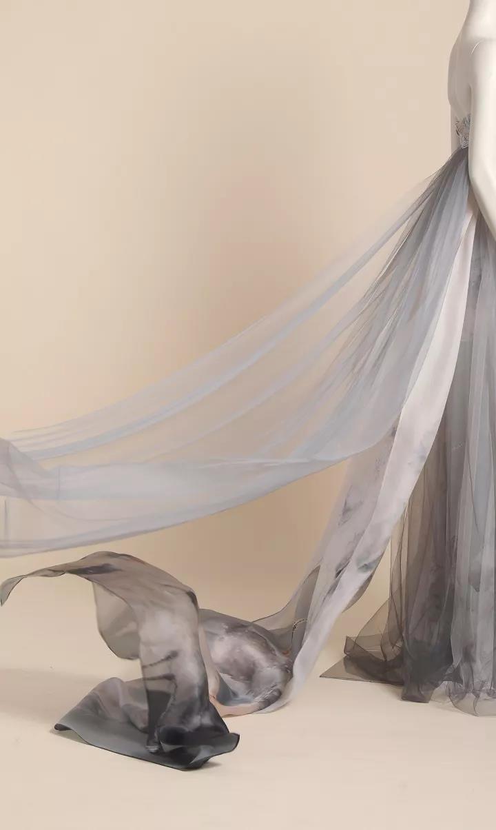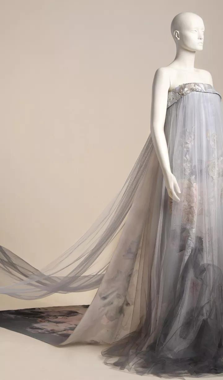 《风荷舞》作品一共分为三组,设计灵感来源于中国水墨画中风中荷叶飞舞的意像,作品采用了手绘、刺绣、晕染绣等工艺,将中国传统美学与现代设计完美融合,让华亿(中国)一站式服务官网女性如同风中轻舞的墨荷,摇曳生姿,动静之中展现变幻的灵性之美。